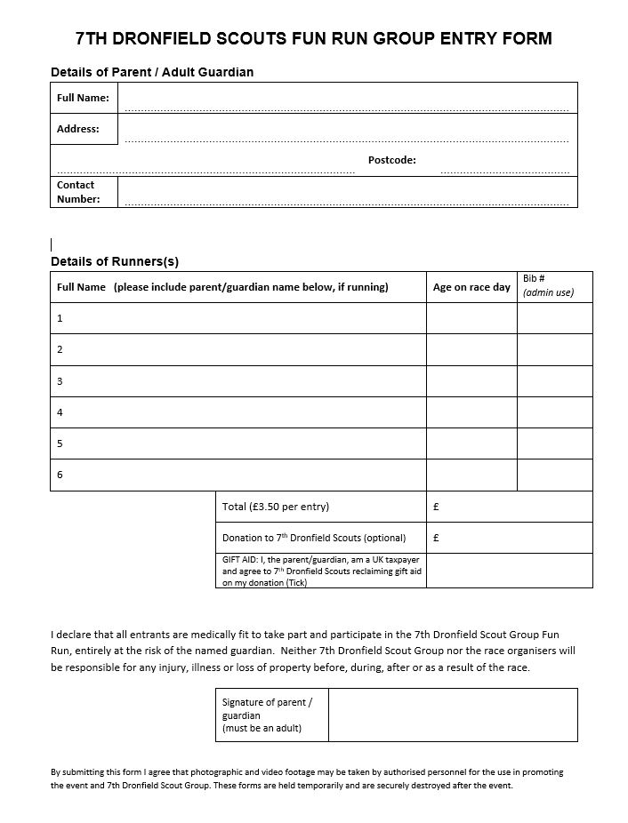 We do not take advance entry to the fun run. Please enter on the day by registering at the Scout Hut on Gorsey Brigg. Price £3.50.